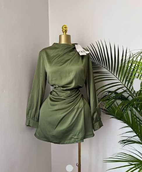 Zara rochie mini kaki verde maneci lungi