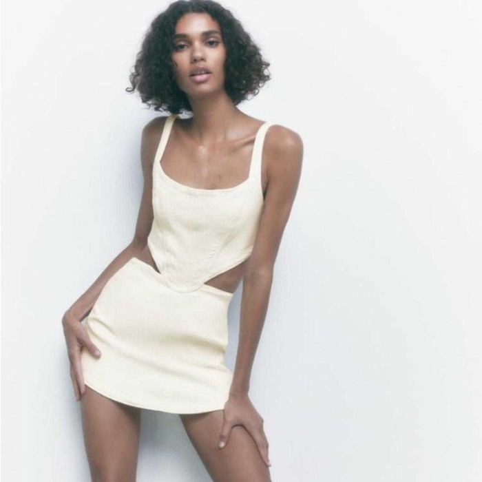Zara rochie scurta denim alb cut out decupata corset moderna