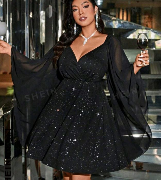 Rochii ocazie paiete mas S multicolor negru argintiu