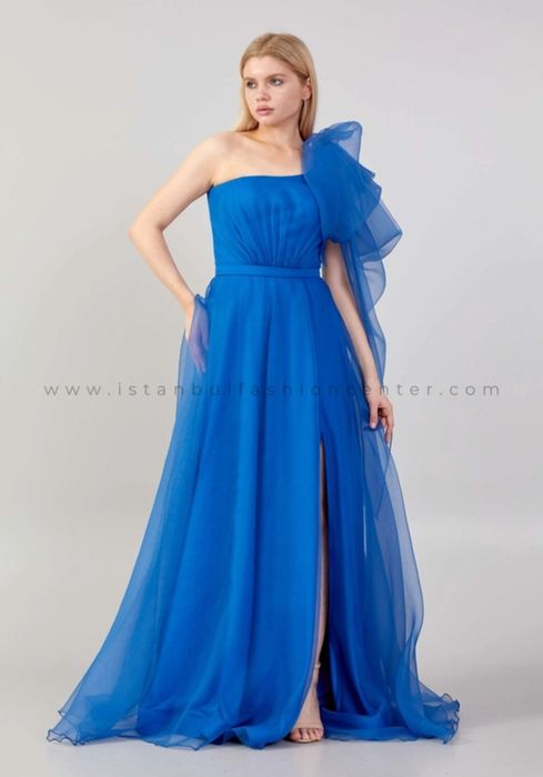 Rochie albastru regal voal dantela eleganta nunta botez bal