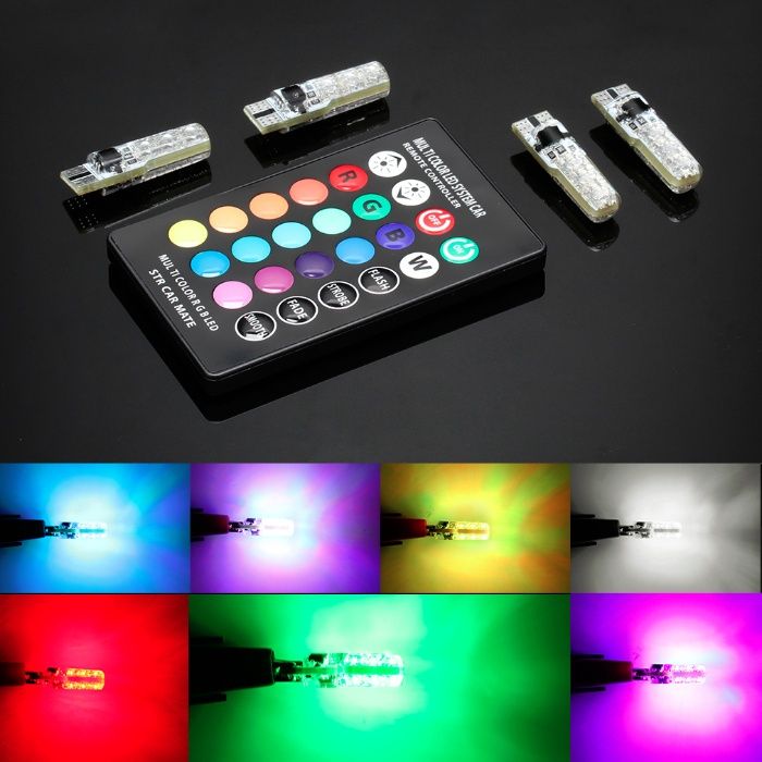 Becuri LED w5w T10 RGB cu telecomanda si functie stroboscop