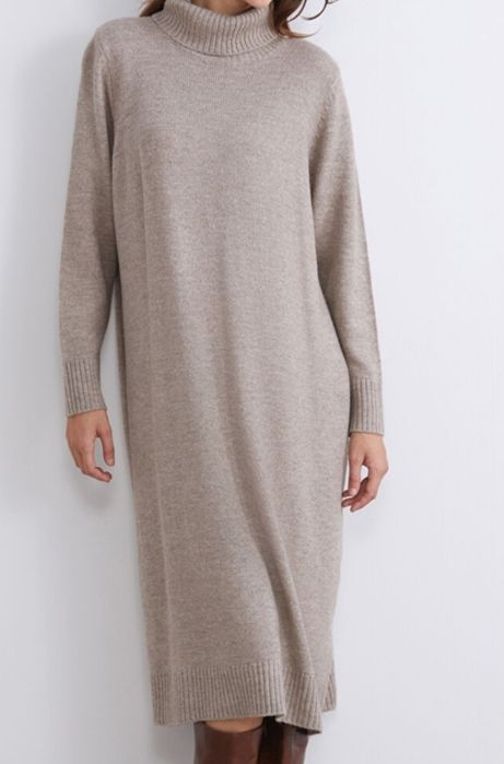 Rochie tricotată cu croială evazată și guler înalt, marimea XXL