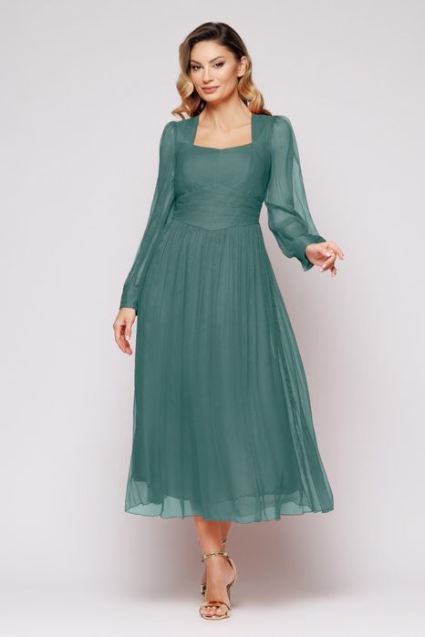 Rochie de mătase verde, ocazii speciale, mărimea L/XL