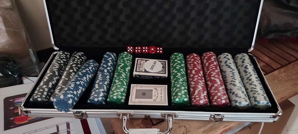 Set poker 500 jetoane imprimate. 4 gr. Cutie tabla. Nou!