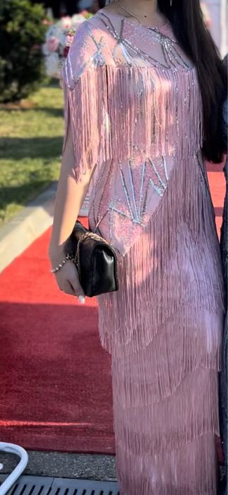 Rochie roz cu franjuri