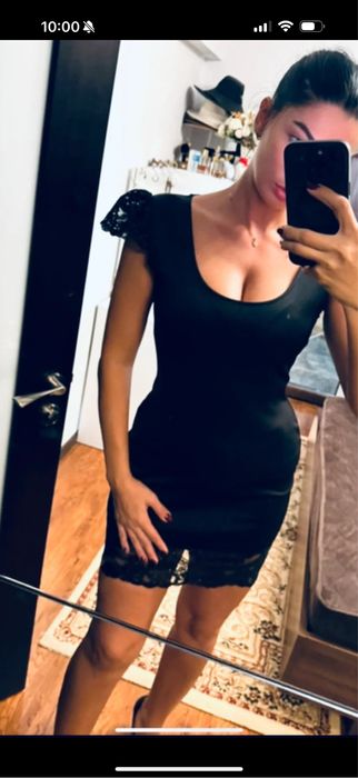 Vând o rochie de ocazie, S, ca noua, neagră, dantela, tul, paiete