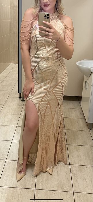 Rochie lunga eleganta cu sclipici de gala maneci lungi Zara marimea S
