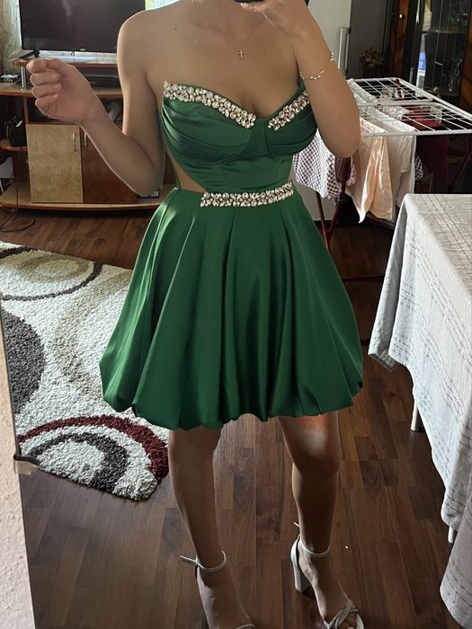 Rochie ocazie, culoare verde, marimea 34, purtata o singura data, cumparata din Bacau din magazinul Junior