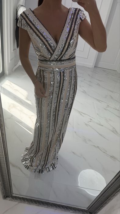 Rochie Asos gri cu paiete, perle si margele