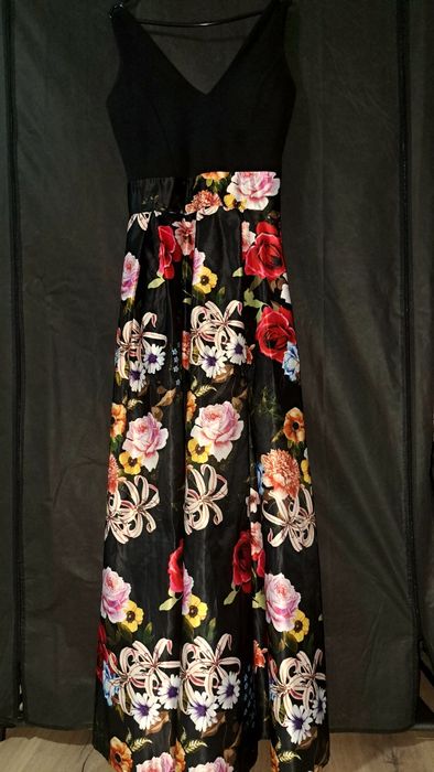 Rochie de seară, lungă și detalii cu flori.