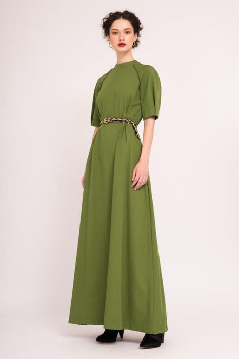 Rochie Bluzat Moda Urbana maxi verde retro cu maneci bufante