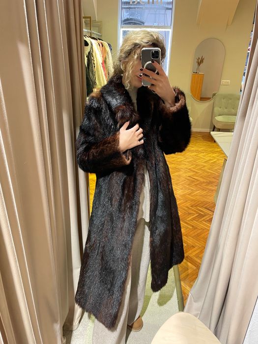 Haină de blană naturală din nurcă – nouă, neagră, elegantă