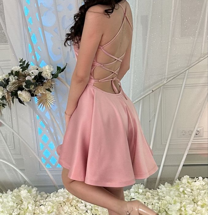Zara rochie mini scurta roz pudra bretele spate gol