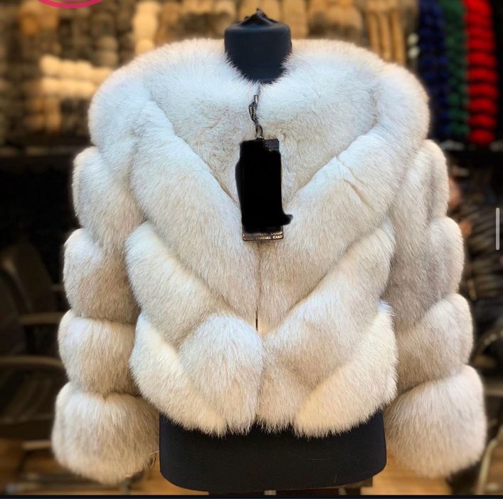 Haina blana naturala de vulpe  masM 2în 1(se face si vesta)
