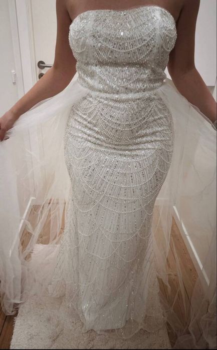 Rochie Mirea cu perle și aplicații stil sirenă