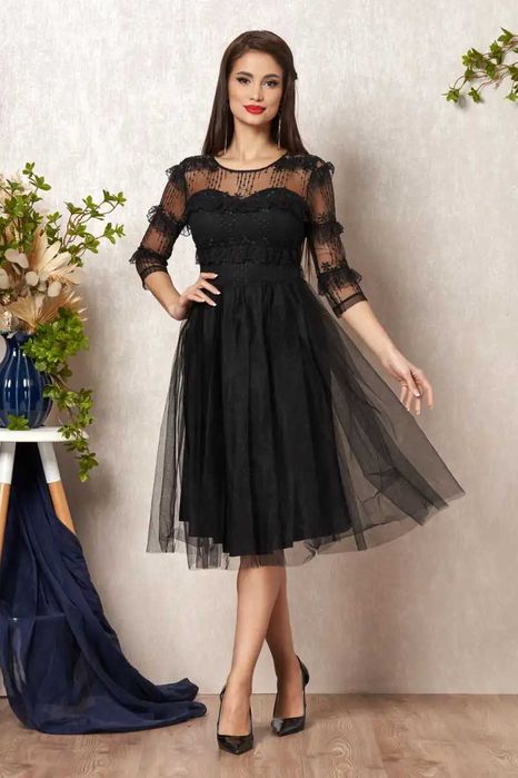 Rochie de ocazie din dantelă fină și tull delicat