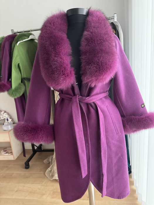 Vand palton din lana de alpaca cu vulpe naturala la 800 lei