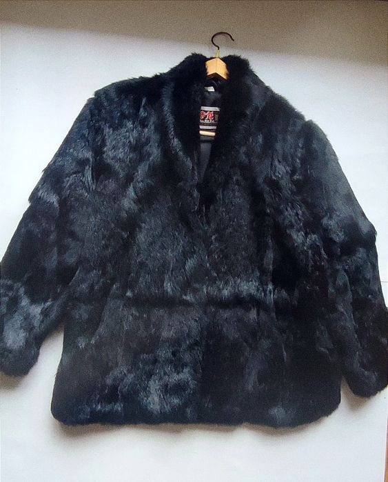 Haină de blană  naturală neagră de iepure