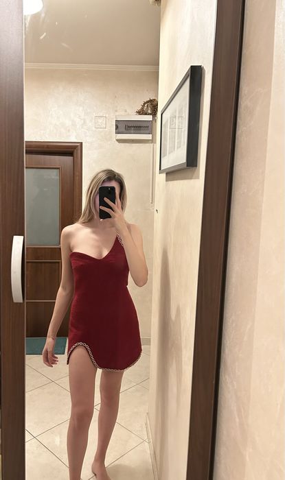 Rochie rosie Zara cu lant auriu