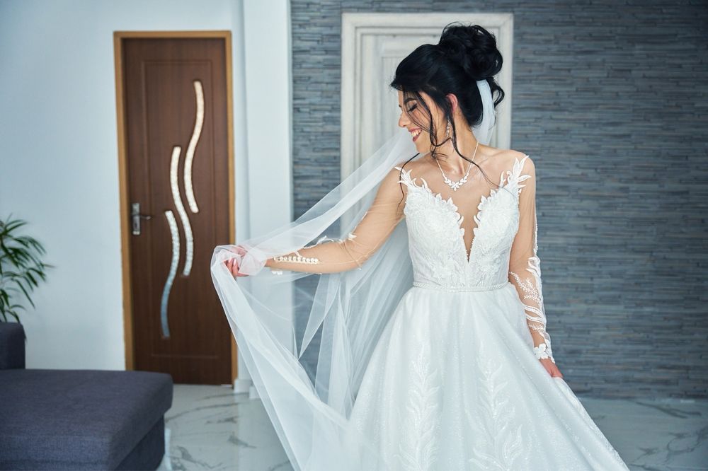 Rochie Mireasă cu Sclipici + Voal + 2 crinoline Nemodificată