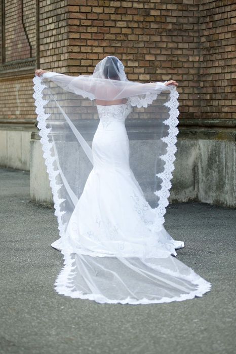 Vând rochie de mireasa mărimea XL,rochia are si voal si cerc