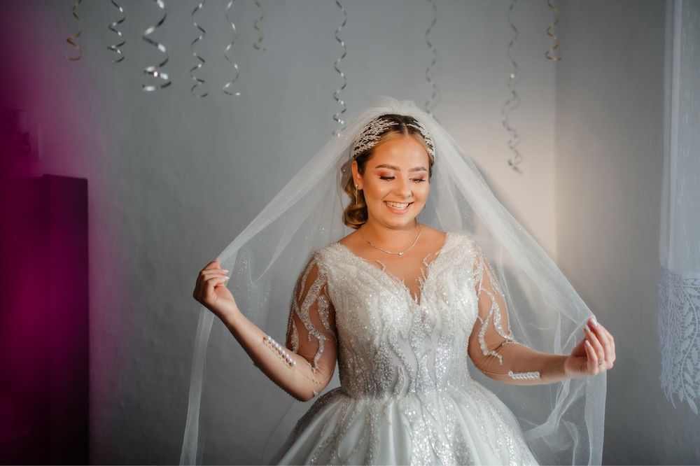 Rochie de mireasa + voal lung cu perlute + tiara Selebry