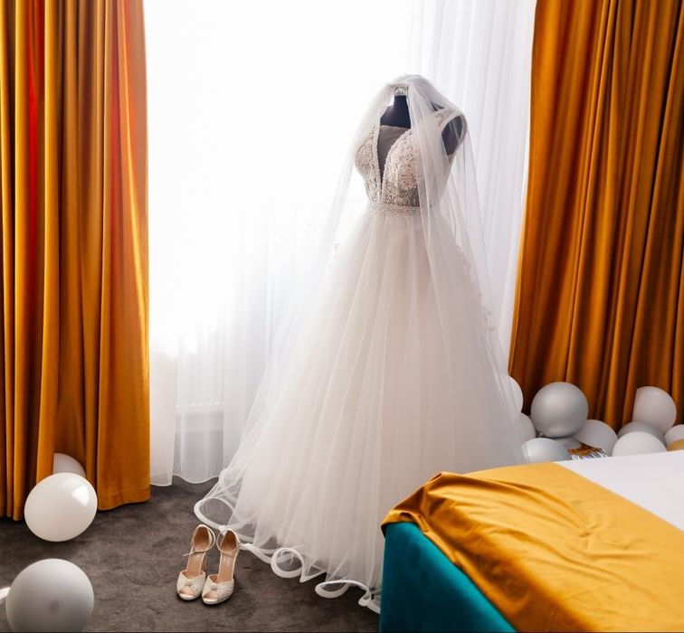 Rochie mireasa - S + voal lung GRATIS