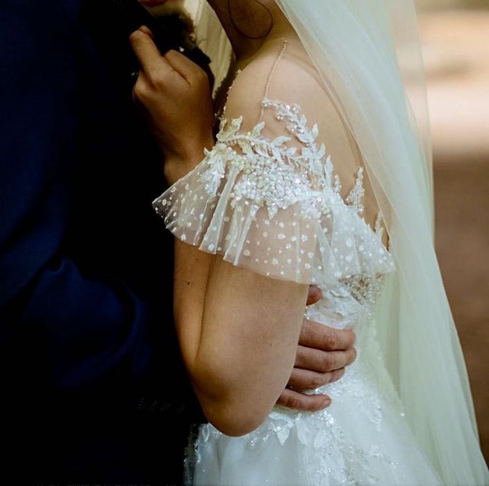 Vând rochie de mireasă deosebită cu dantelă,cristale,achiziție Franța