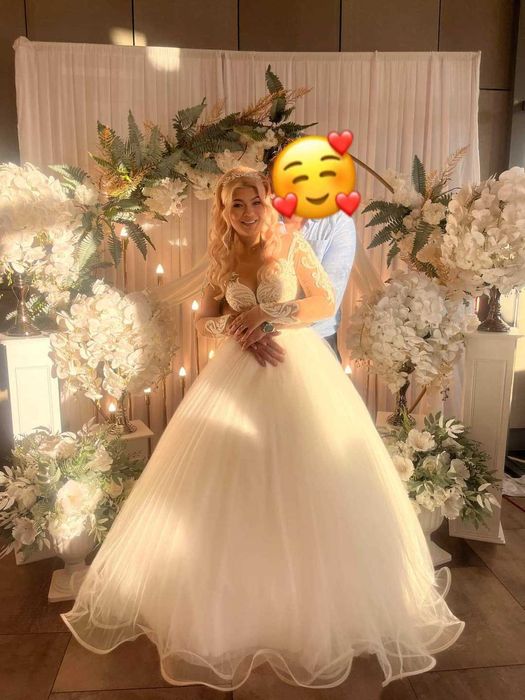 Vând rochie de mireasa stil prințesa,cu mâneci și corse.