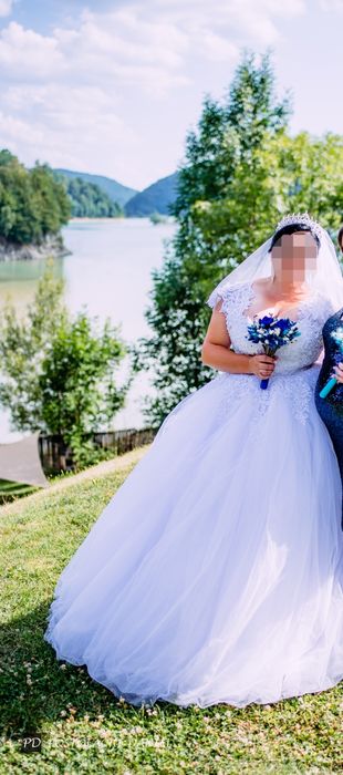 Rochie de mireasă prințesă S-M, corset, voal lung și scurt incluse
