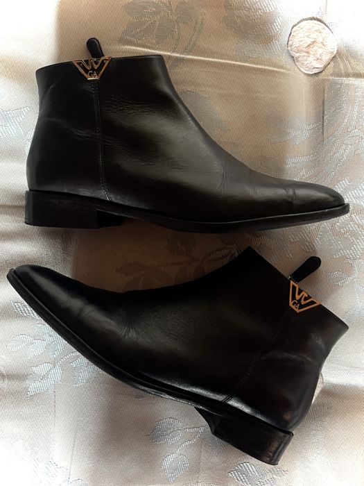 Emporio Armani, botine negre, piele naturală