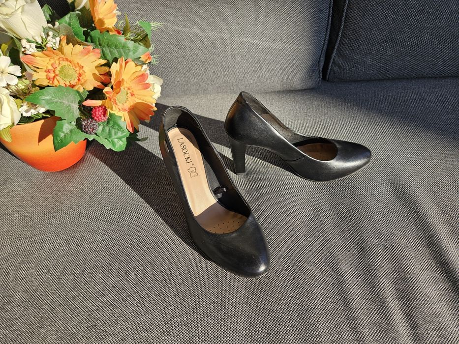 Pantofi cu toc, piele naturala, numarul 38, negru