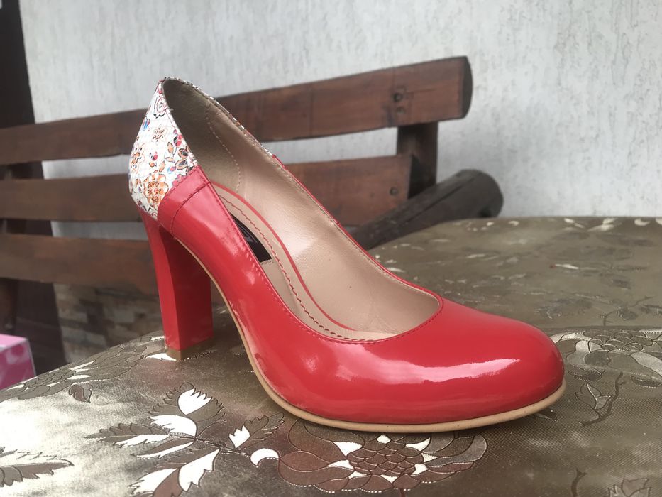 Pantofi Dama cu Toc Piele Naturala Rosii Noi Garkoni Negociabil