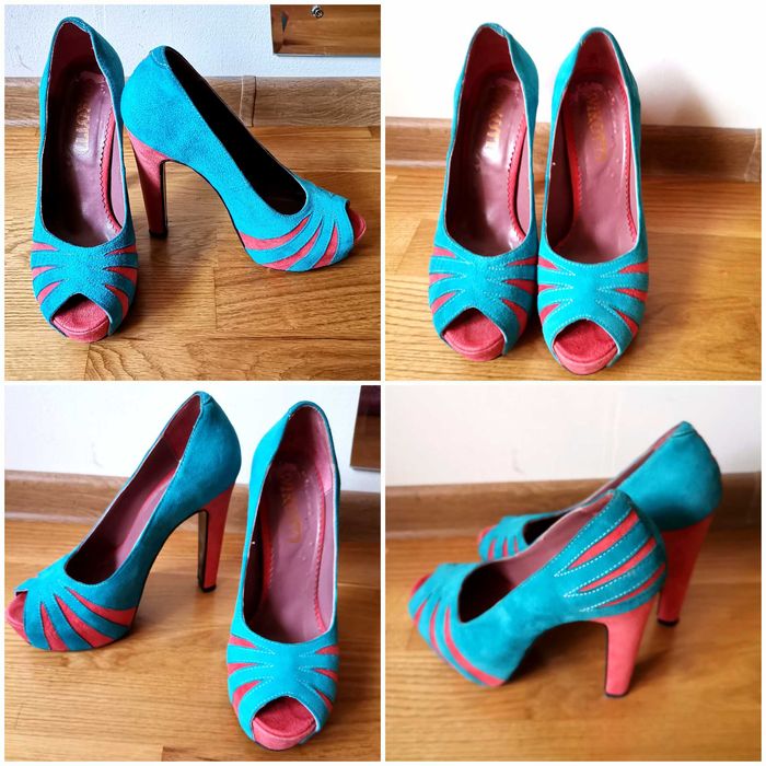 Pantofi cu toc inalt, Corai&Turcoaz, marimea 37
