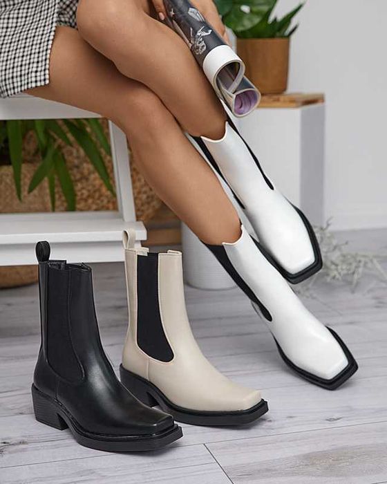 Cizme /ciocate crem, cu varf si toc patrat, marimea 40