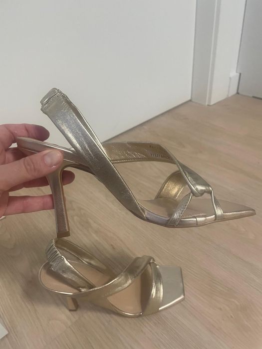 Sandale Piele Zara, aurii, toc 7 cm