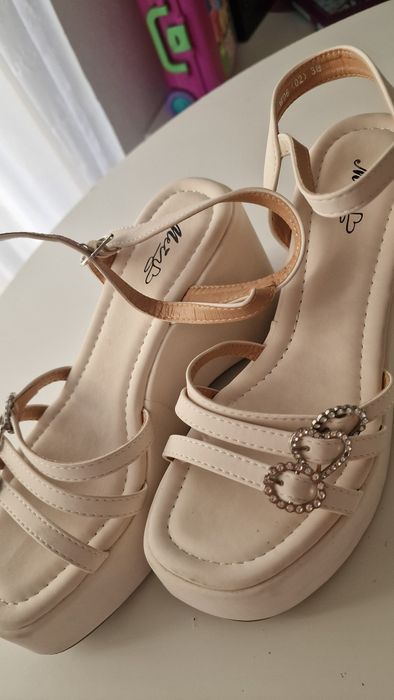 Sandale crem cu accesorii