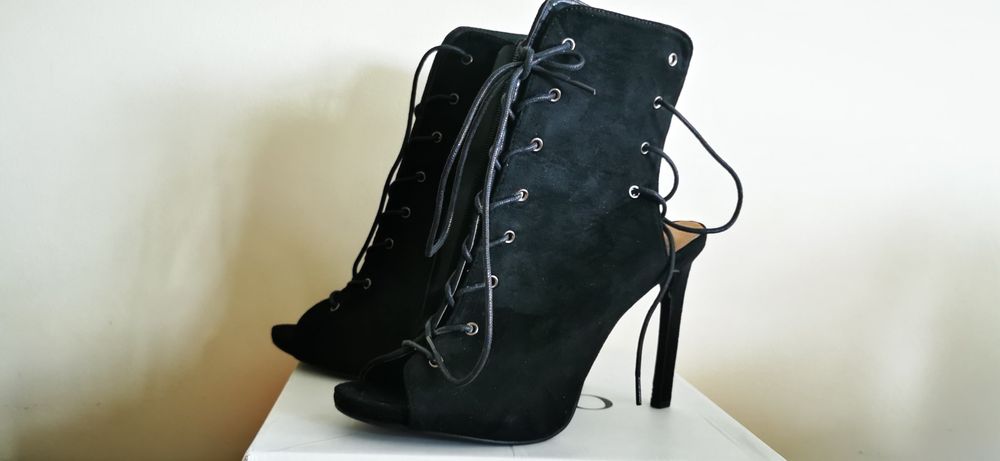 Botine/Ghete/Cizme damă scurte cu toc elegante cu șireturi & fermoar