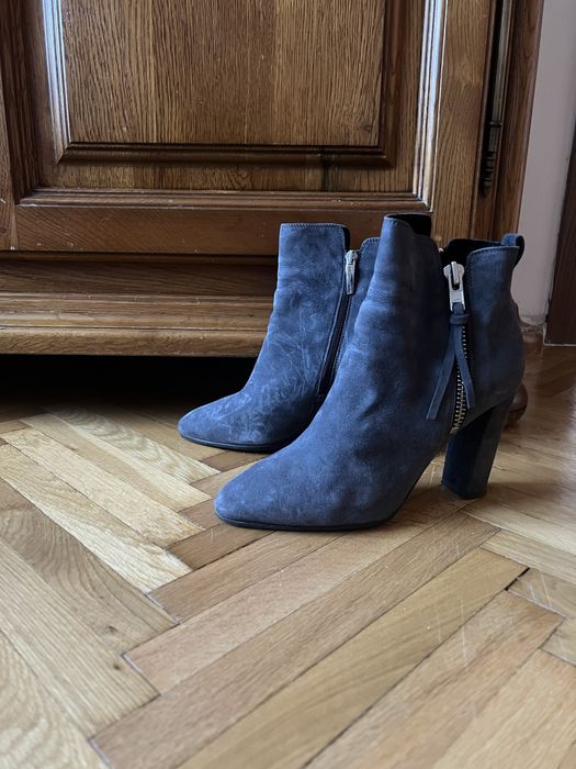 Botine din piele întoarsă gri