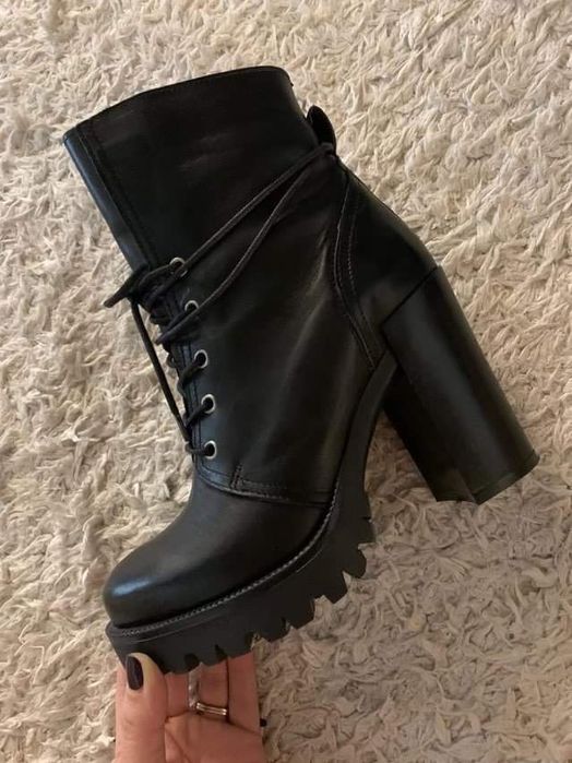 Bocanci din piele cu toc gros marimea 38
