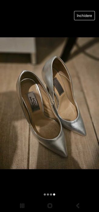 Pantofi cu toc argintii nr 38