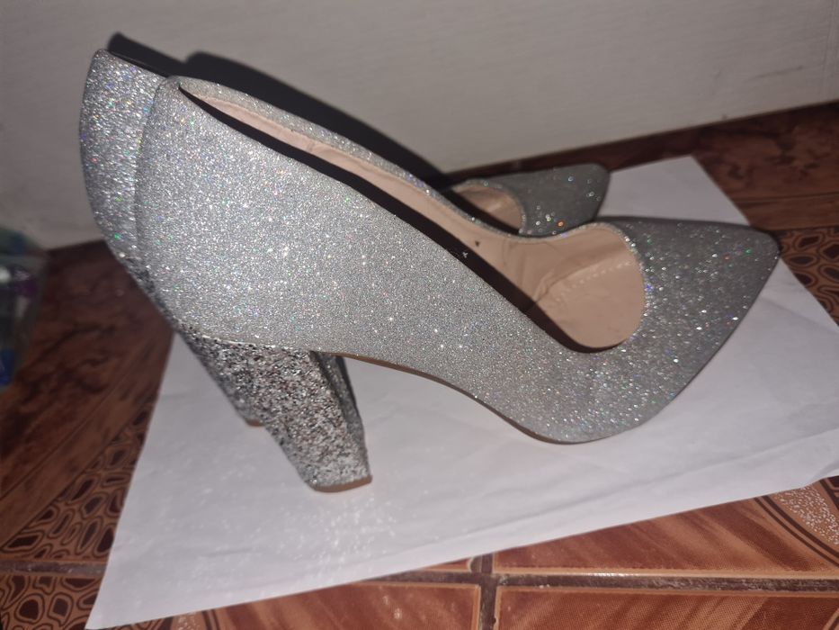 Vand pantofi argintii cu sclipici