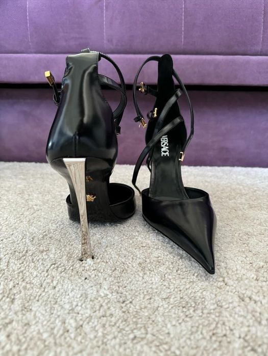 Pantofi toc Versace Pin Point Leather Pumps Original marimea 41 negri