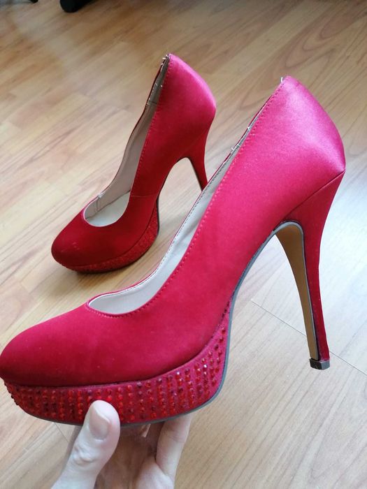 Pantofi din satin cu toc, dama, rosii, marimea 38