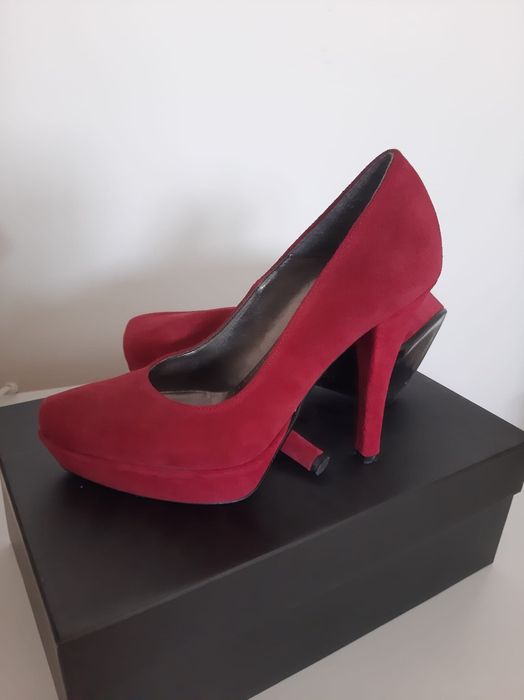 Pantofi damă Gazelle,mărime 36, piele întoarsă, roșii,bareta pe glezna