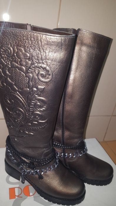 Cizme lungi, piele.