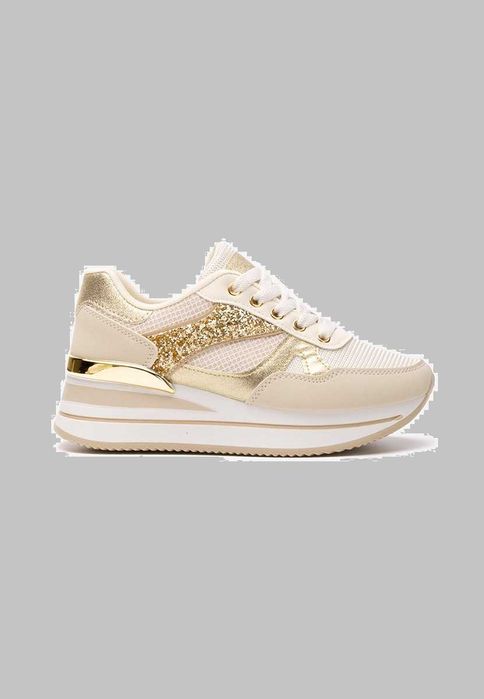 Adidasi superbi cu imprimeu glam auriu cu platforma ascunsa sneakers