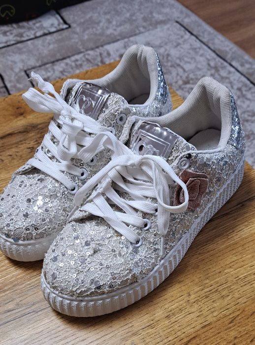 Teniși  albi cu paiete, pentru fete