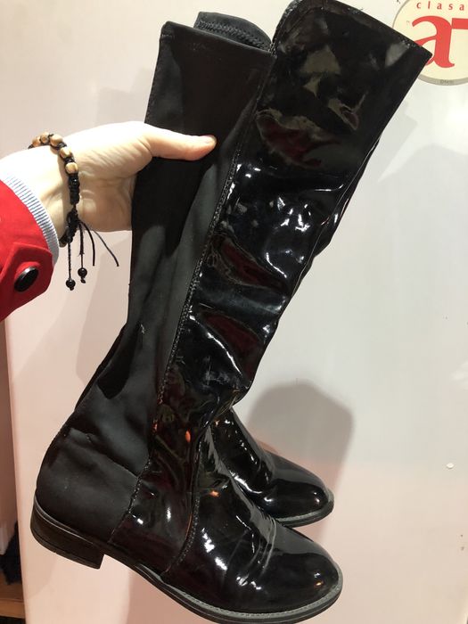Cizme Zara noi 36 material elastic peste genunchi negre