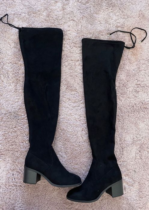 Cizme lungi cu toc patrat
